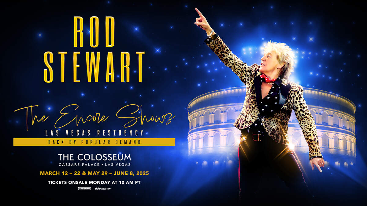 During March and May 2025, Rod Stewart will be performing at The Colosseum inside Caesars Palace. You know him from his hit songs, "I Don't Want to Talk About IT," "Sailing," and "Maggie May." Now, you can hear all these songs live! Purchase tickets here: