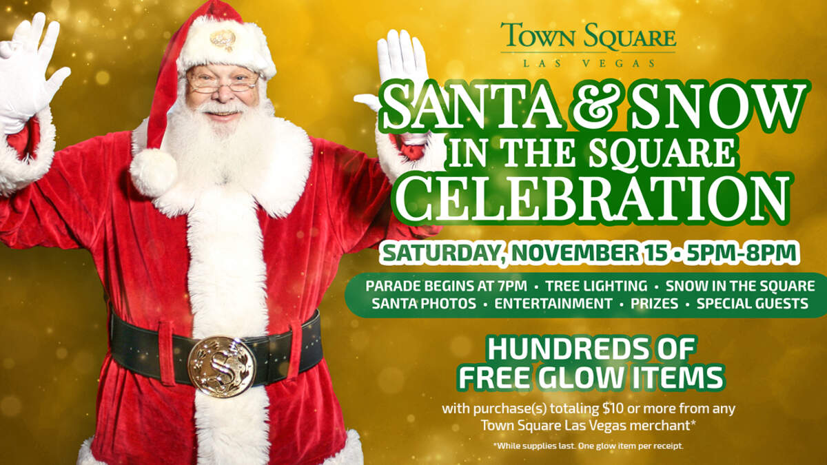 Come join us this Saturday at Town Square Las Vegas for Santa’s Arrival and Parade! We’ll be there from 5 PM to 7 PM with your chance to win Town Square gift cards and other prizes. Then, at 7 the parade begins, followed by a tree lighting.