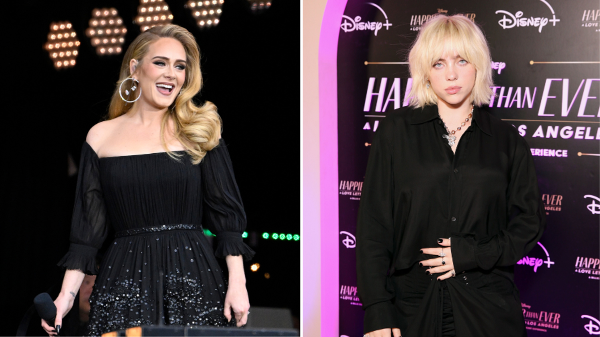 Adele's 9-year-old son is a huge Billie Eilish fan! The "Easy On Me" singer revealed that her son Angelo is "obsessed" with Eilish and that he takes his studies of the singer's lyrics very seriously in her new Elle cover story.