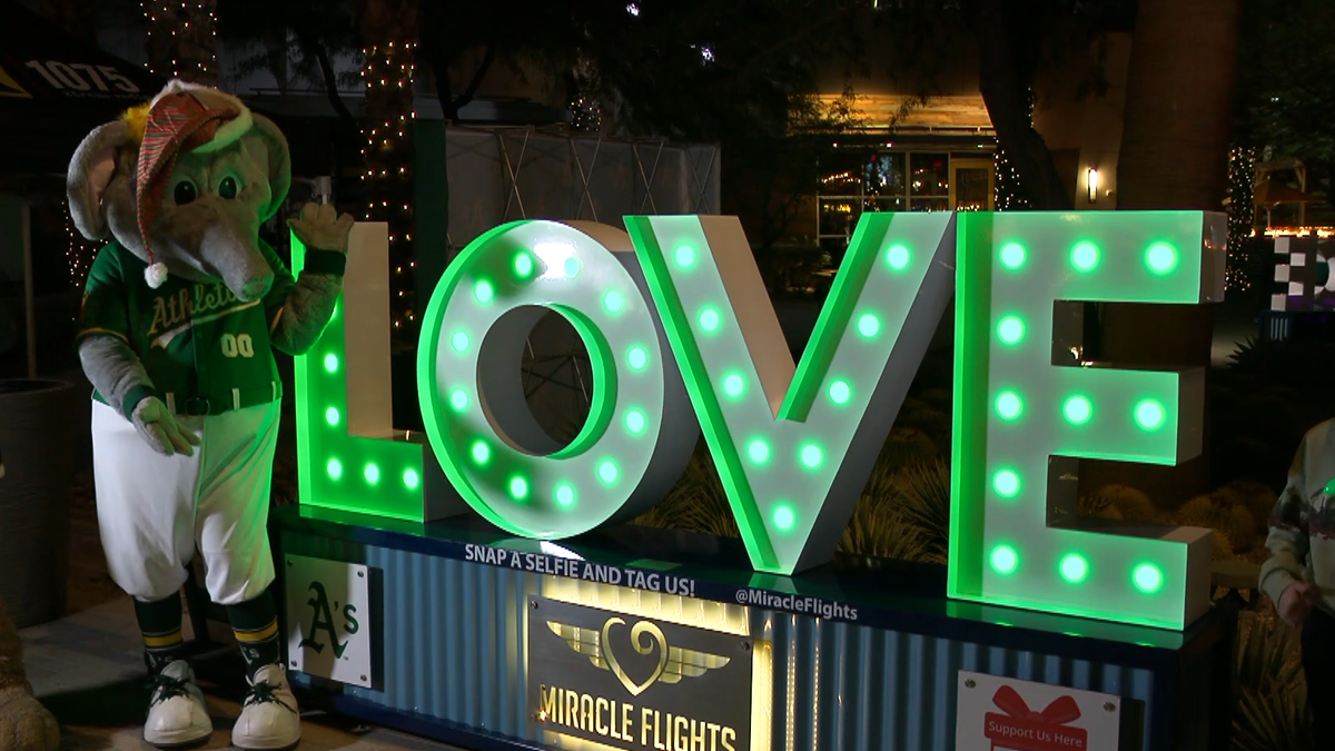 Athletics and Miracle Flights teamed up to launch a “Lights for Flights” event in Downtown Summerlin, lighting seven large holiday signs in the team’s green and gold. The signs were designed to spotlight Miracle Flights’ mission of offering free commercial flights for families whose children require specialized medical care outside their home area.